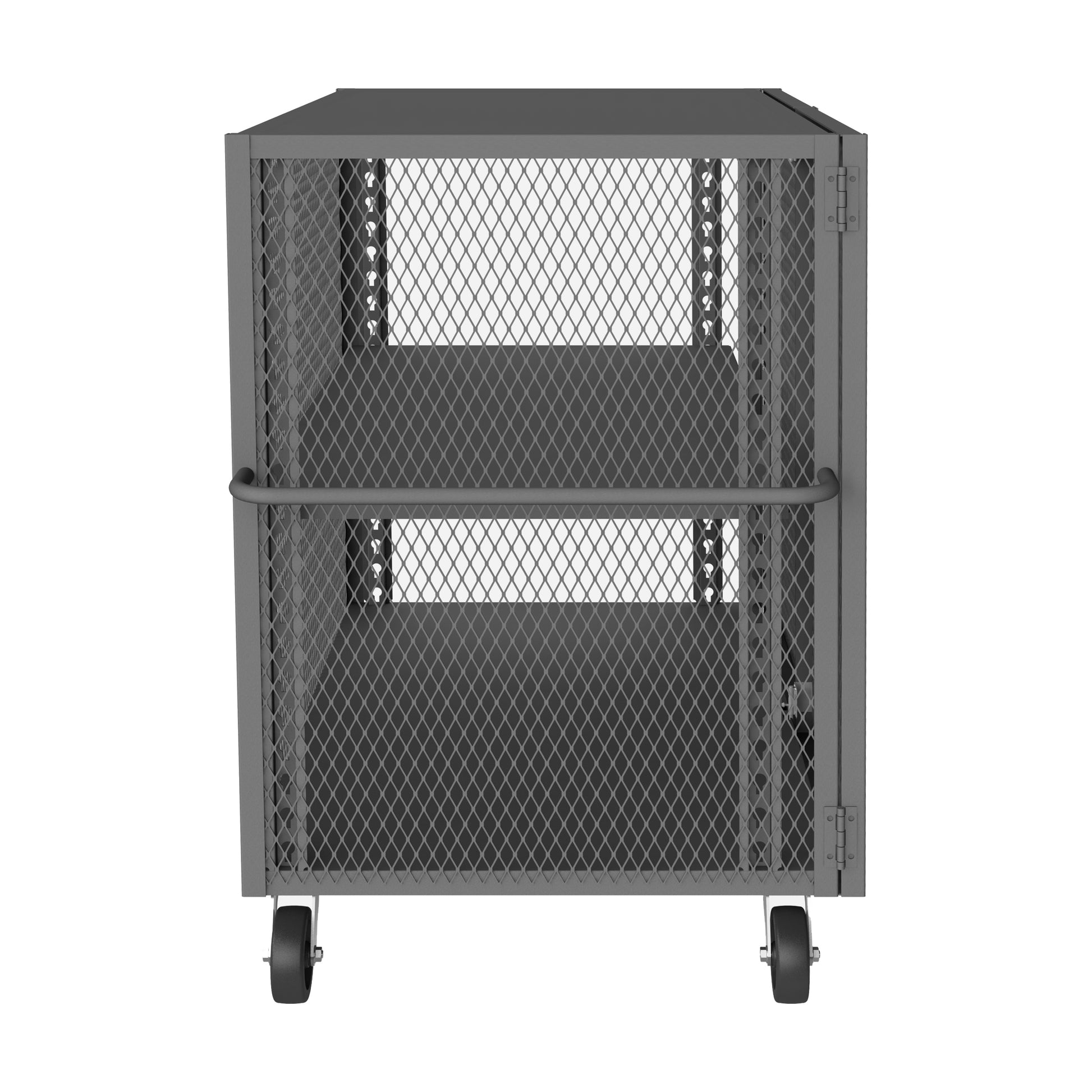 Security Mesh Truck, 36 x 60, 6" x 2" Phenolic Casters, - (2) Rigid, (2) Swivel, 1 Adjustable Shelf, 1 Base Shelf, Tubular Push Handle, Pad-Lockable Doors, Gray