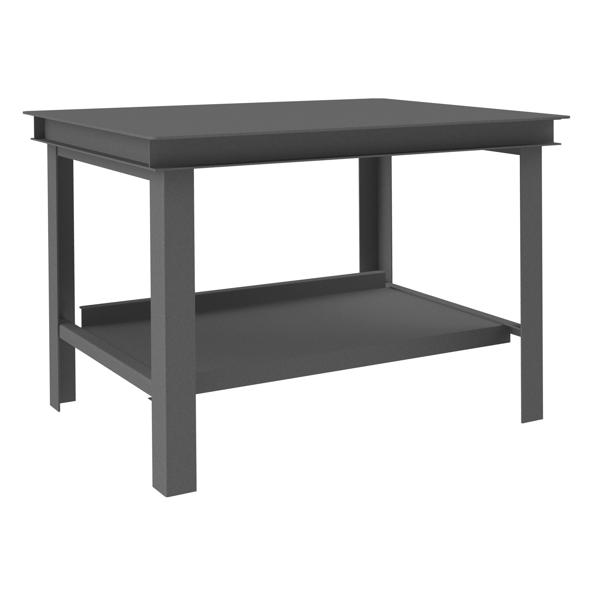 Extra Heavy Duty Workbench, 48 x 36, 3/16" Steel Top with Angle Iron Frame, Bottom Shelf with Back Stop, 14000 lbs. Capacity, Gray