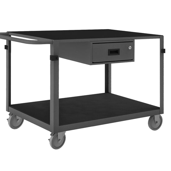 Instrument Cart, 14 Gauge Steel, 2 Shelves, 24 x 36, 1000 lbs. Capacity, Wood Top w/ Vinyl Matting Cover, Corner Bumpers, 5" x 1-1/4" Polyurethane Caster - (4) Swivel w/ Side Brakes, Gray