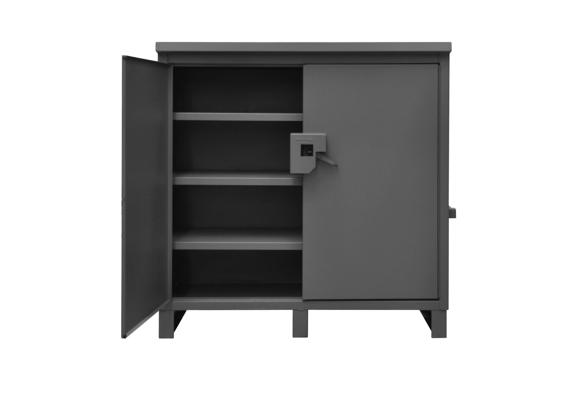 Jobsite Storage Cabinet, 14 Gauge, 64 x 28 x 62-3/4, 3 Fixed Shelves, Flush Doors, Cast Iron Pad-lockable Handle, Gray