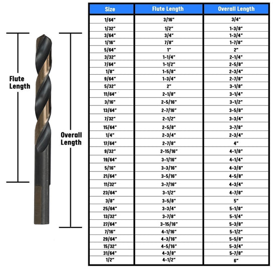 Contractor grade drill bit manufactured from M1 High Speed Steel and for use in a wide range of materials in the iron and steel families such aluminum, iron, steel and other metal drilling. Contractor Drill Bits have a 135 degree split point tip for self-centering and reducing thrust. Compared to a conventional 118 degree tip, these drills wont go "walking" on you. The 3-Flat shank creates an extra secure hold in your chuck. They are black and gold surface treated and jobber (standard) length.