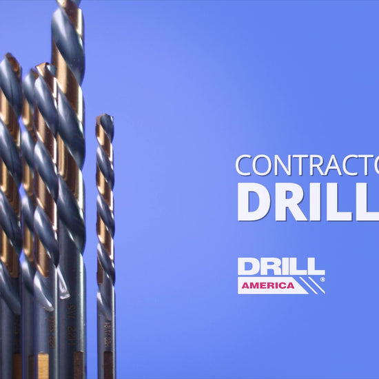 Contractor grade drill bit manufactured from M1 High Speed Steel and for use in a wide range of materials in the iron and steel families such aluminum, iron, steel and other metal drilling. Contractor Drill Bits have a 135 degree split point tip for self-centering and reducing thrust. Compared to a conventional 118 degree tip, these drills wont go "walking" on you. The 3-Flat shank creates an extra secure hold in your chuck. They are black and gold surface treated and jobber (standard) length.