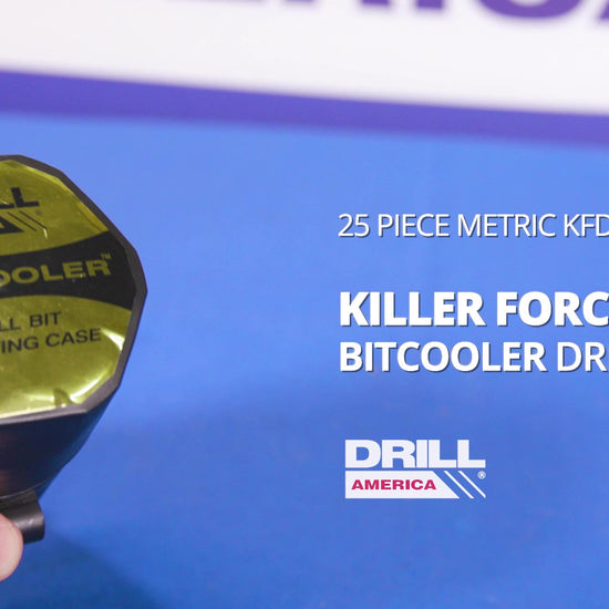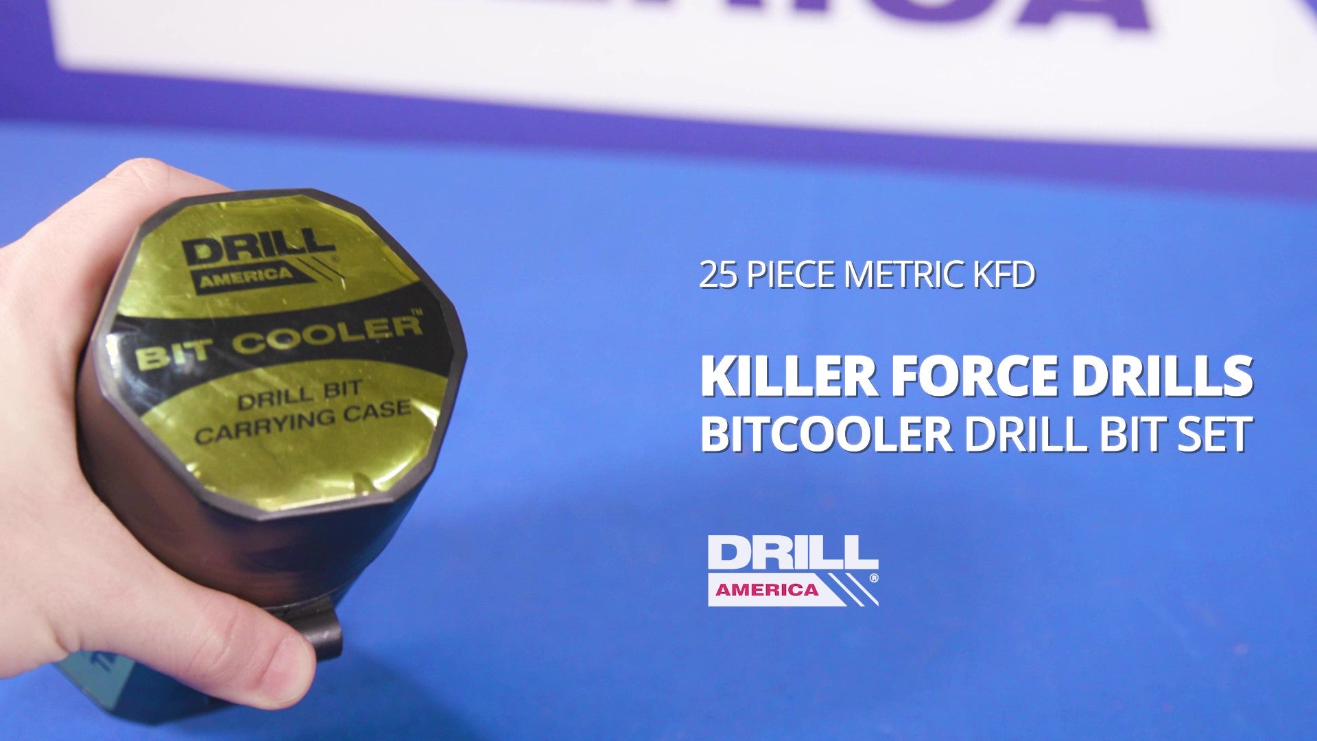 KFD Killer Force Drill Bits are manufactured from M2 premium grade high speed steel, black and gold surface treated for use in a wide range of materials such aluminum, iron and stainless steel. They have a 135° split point tip for fast penetration and accurate drilling and a round shank for use in a wide range of tool holding systems. KFD Killer Force Drill Bits are jobber (standard) length.
