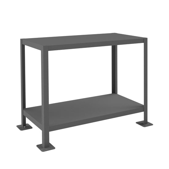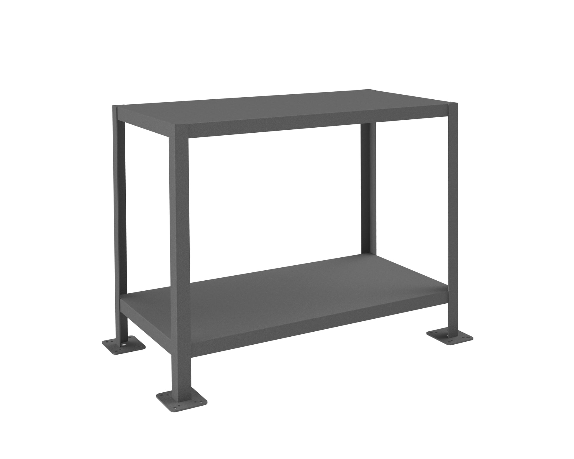 MT Workbench, 18 x 36, 2 Shelves, 14 Gauge Steel, 2000 lbs. Capacity, Textured Powder Paint, Gray
