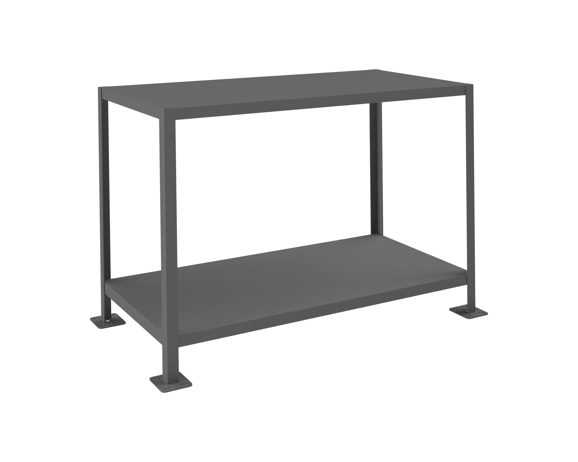 MT Workbench, 24 x 48, 2 Shelves, 12 Gauge Steel, 3000 lbs. Capacity, Textured Powder Paint, Gray
