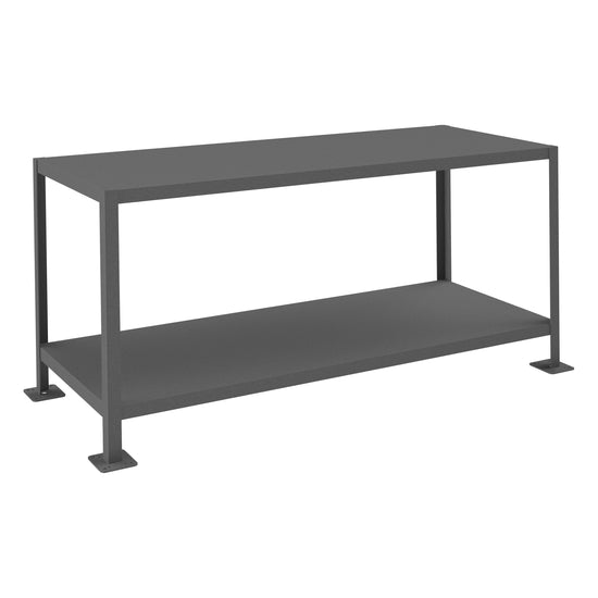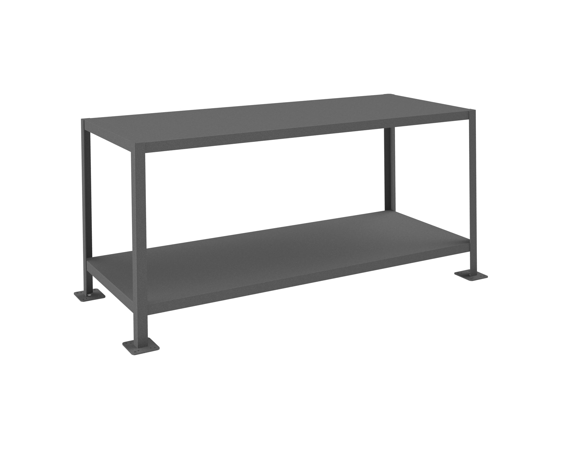 MT Workbench, 24 x 60, 2 Shelves, 14 Gauge Steel, 2000 lbs. Capacity, Textured Powder Paint, Gray