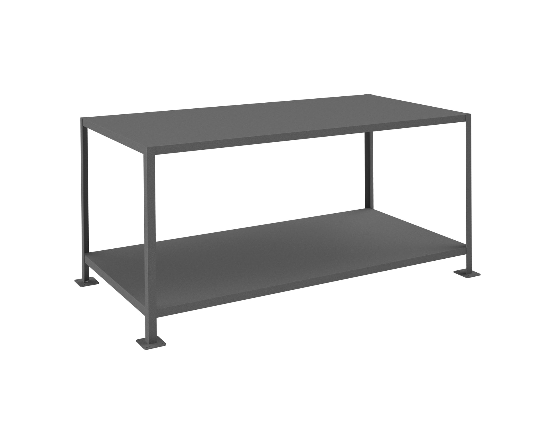 MT Workbench, 36 x 72, 2 Shelves, 12 Gauge Steel, 3000 lbs. Capacity, Textured Powder Paint, Gray