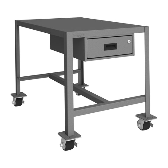 Mobile MT Workbench, 24 x 36, Top Shelf Only with Drawer, 14 Gauge Steel, 2000 lbs. Capacity, 3 x 1-13/16 Phenolic Casters - (4) Swivel with Side Brakes, Textured Powder Paint, Gray