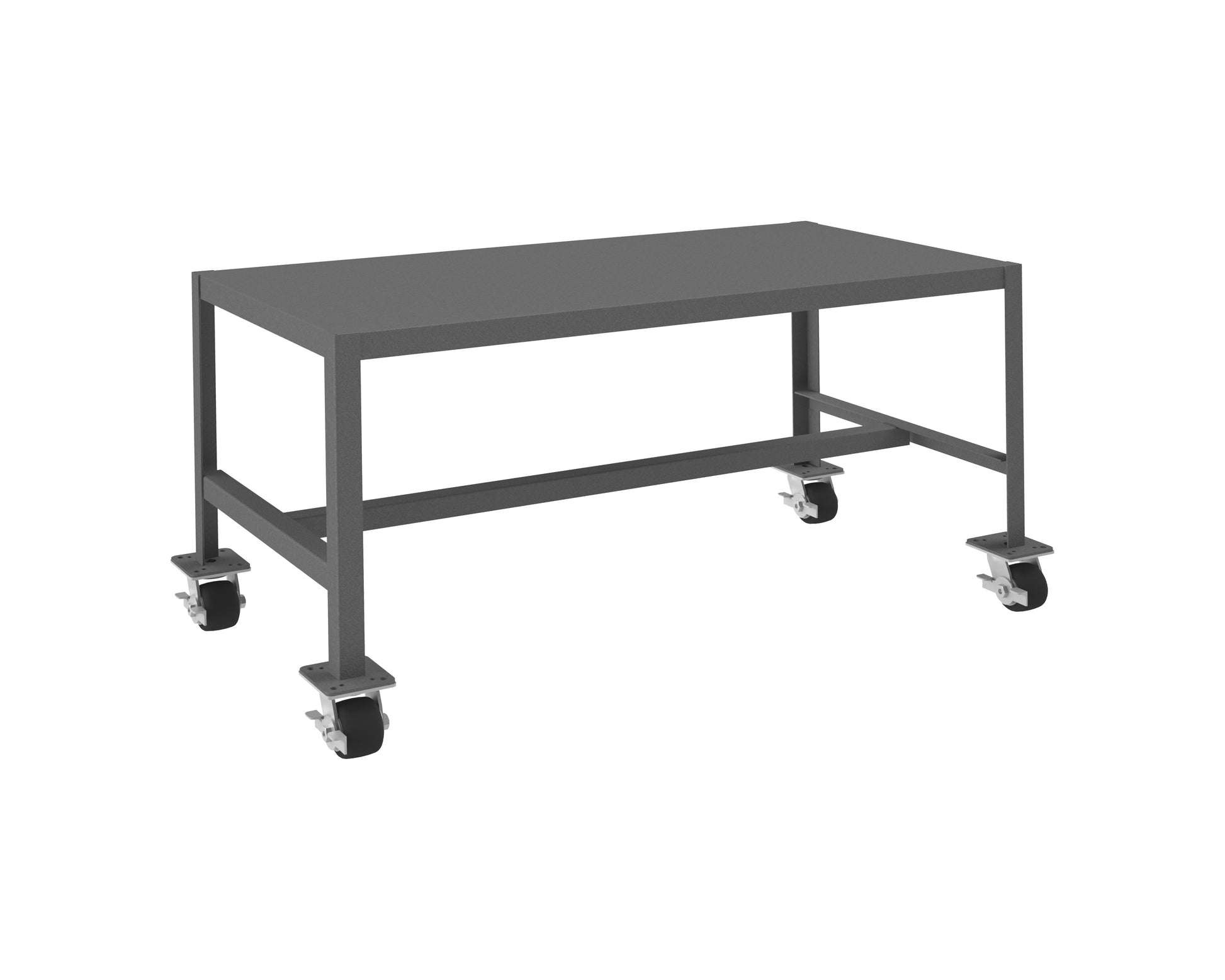 Mobile MT Workbench, 24 x 48, Top Shelf Only, 14 Gauge Steel, 2000 lbs. Capacity, 3 x 1-13/16 Phenolic Casters - (4) Swivel with Side Brakes, Textured Powder Paint, Gray