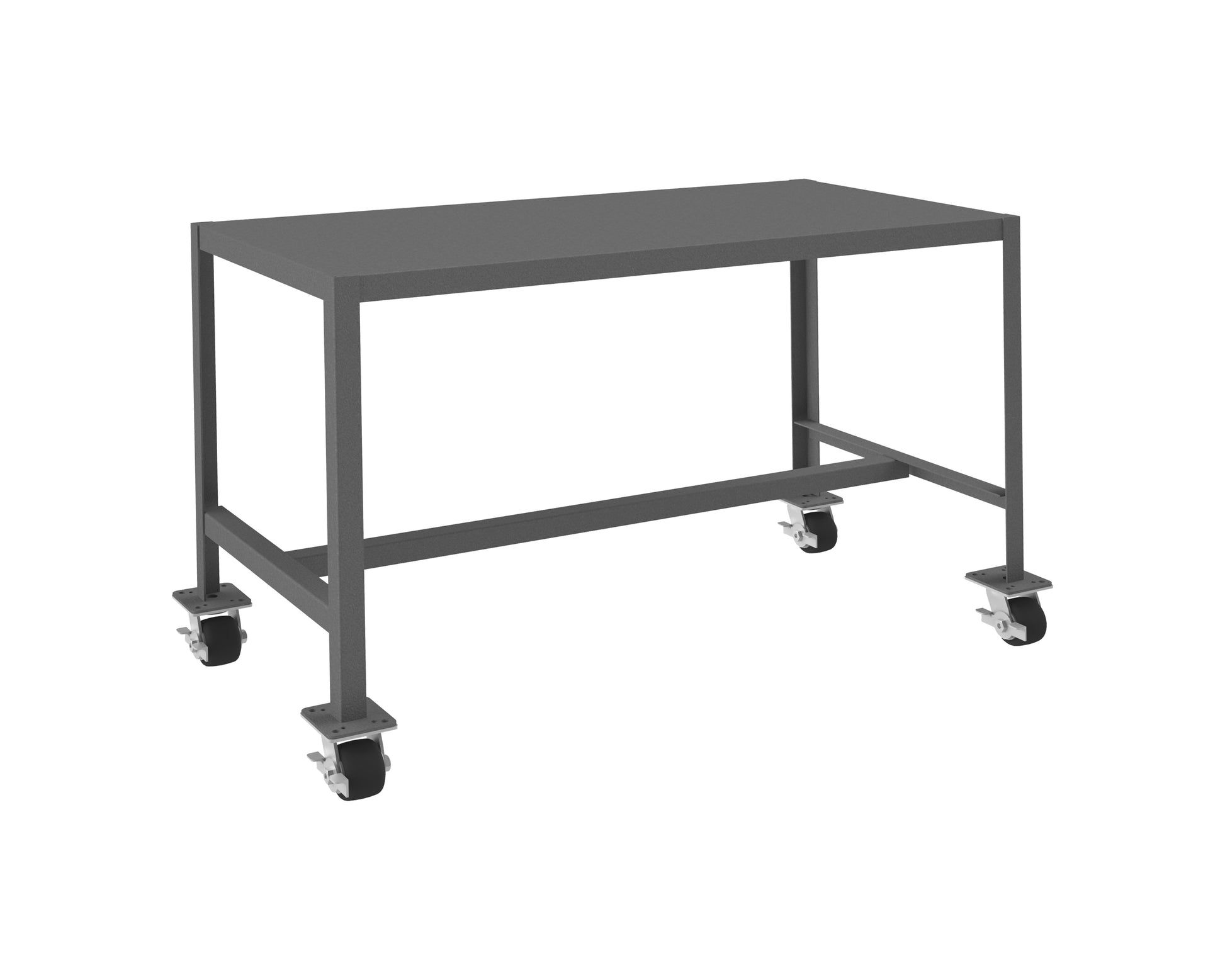 Mobile MT Workbench, 24 x 48, Top Shelf Only, 14 Gauge Steel, 2000 lbs. Capacity, 3 x 1-13/16 Phenolic Casters - (4) Swivel with Side Brakes, Textured Powder Paint, Gray