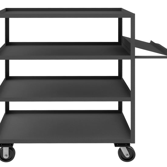 Order Picking Cart with 6" x 2" Phenolic Casters - (2) Rigid, (2) Swivel, 4 Shelves with 1-1/2" Lips Up, Slanted Writing Shelf, Tubular Push Handle, Gray