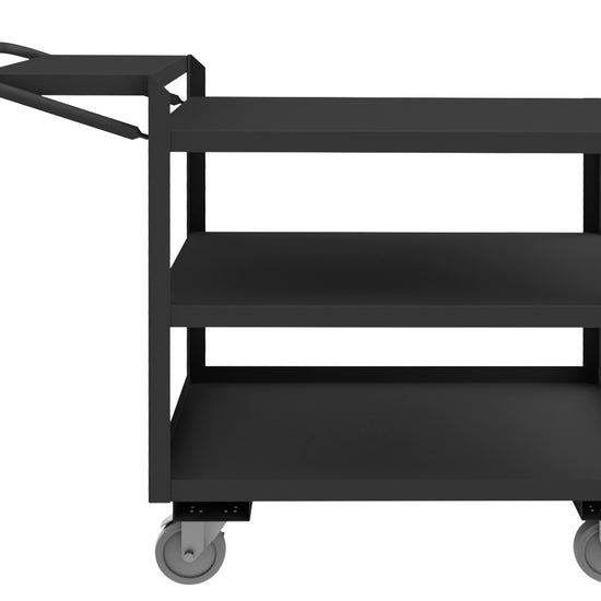 Order Picking Cart with 5" x 1-1/4" Polyurethane Casters - (2) Rigid, (2) Swivel with Side Brakes, 3 Shelves, Flat Writing Shelf, 1-1/2" Lips Up on Bottom Shelf, Tubular Push Handle, Gray