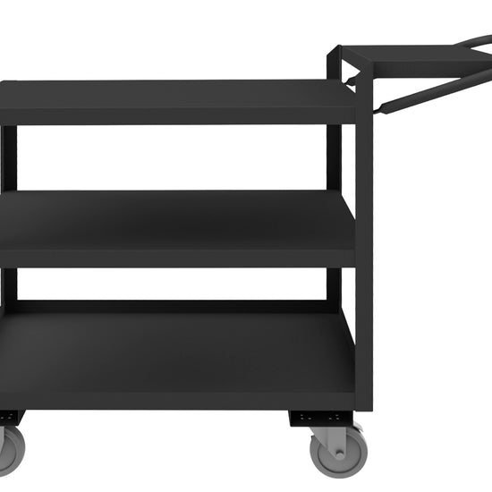 Order Picking Cart with 5" x 1-1/4" Polyurethane Casters - (2) Rigid, (2) Swivel with Side Brakes, 3 Shelves, Flat Writing Shelf, 1-1/2" Lips Up on Bottom Shelf, Tubular Push Handle, Gray