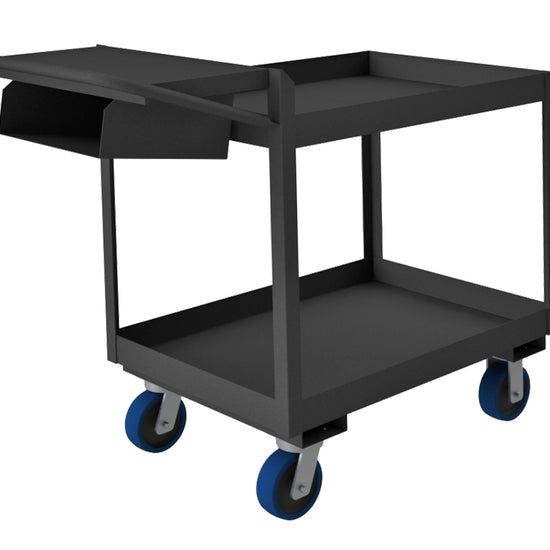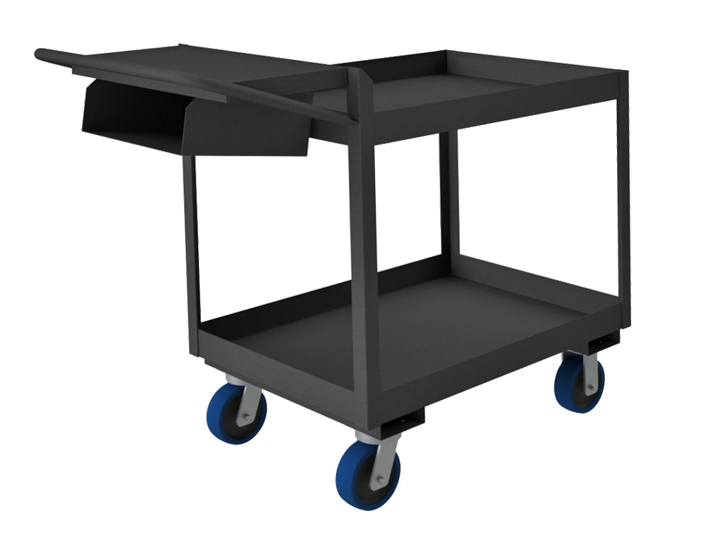 Order Picking Cart with 6" x 2" Polyurethane Casters - (2) Rigid, (2) Swivel, 2 Shelves with 3" Lips Up, Slanted Writing Shelf with Storage Pocket, Tubular Push Handle, Gray