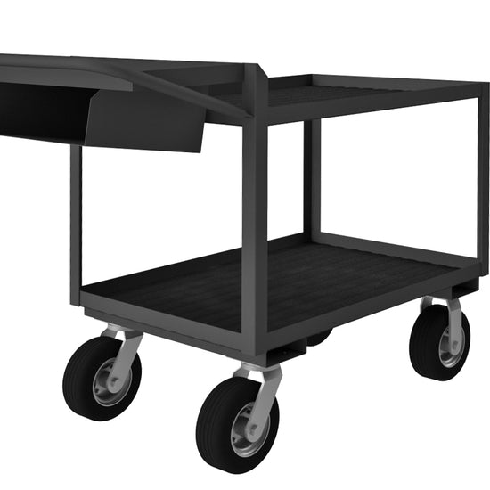 Order Picking Cart with 8" x 2-3/4" Pneumatic Casters, (2) Rigid, (2) Swivel, 2 Shelves w/ 1-1/2" Lips Up, Slanted Writing Shelf with Storage Pocket, Non-Slip Vinyl Surface, Tubular Push Handle, Gray