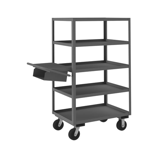Order Picking Cart with 6" x 2" Phenolic Casters - (2) Rigid, (2) Swivel, 5 Shelves with 1-1/2" Lips Up, Flat Writing Shelf with Storage Pocket, Tubular Push Handle, Gray