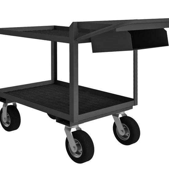 Order Picking Cart with 8" x 3" Pneumatic Casters - (2) Rigid, (2) Swivel, 2 Shelves with 1-1/2" Lips, Slanted Writing Shelf with Storage Pocket, Non-Slip Vinyl Surface, Tubular Push Handle, Gray