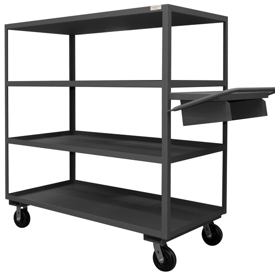 Order Picking Cart with 6" x 2" Phenolic Casters - (2) Rigid, (2) Swivel, 4 Shelves with 1-1/2" Lips Up, Flat Writing Shelf with Storage Pocket, Tubular Push Handle, Gray