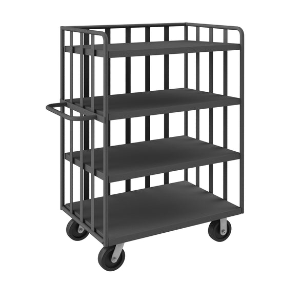 Bulk Stock/Package Mover, 14 Gauge Steel, 3600 lbs. Capacity, 3 Fixed Shelves, 1 Base Shelf, 48 x 24, Flush, 6" x 2" Phenolic Caster - (2) Rigid, (2) Swivel, Gray