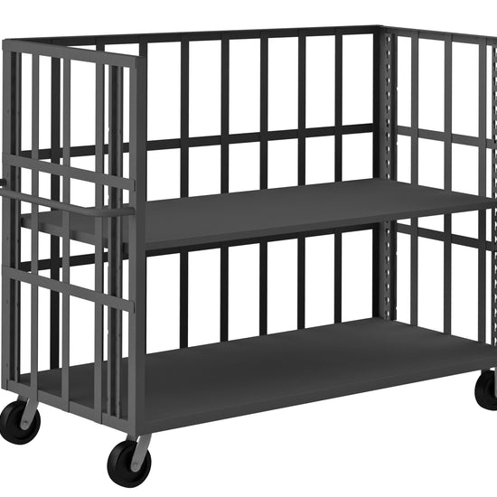 Bulk Stock/Package Mover, 14 Gauge Steel, 3000 lbs. Capacity, 1 Adjustable Shelf - 69-15/16 x 26-7/8, 1 Base Shelf 72 x 30, 72 x 30, Flush, 6" x 2" Phenolic Caster - (2) Rigid, (2) Swivel, Gray
