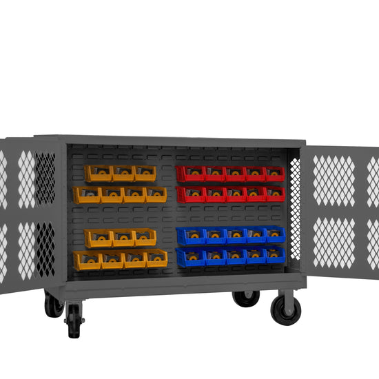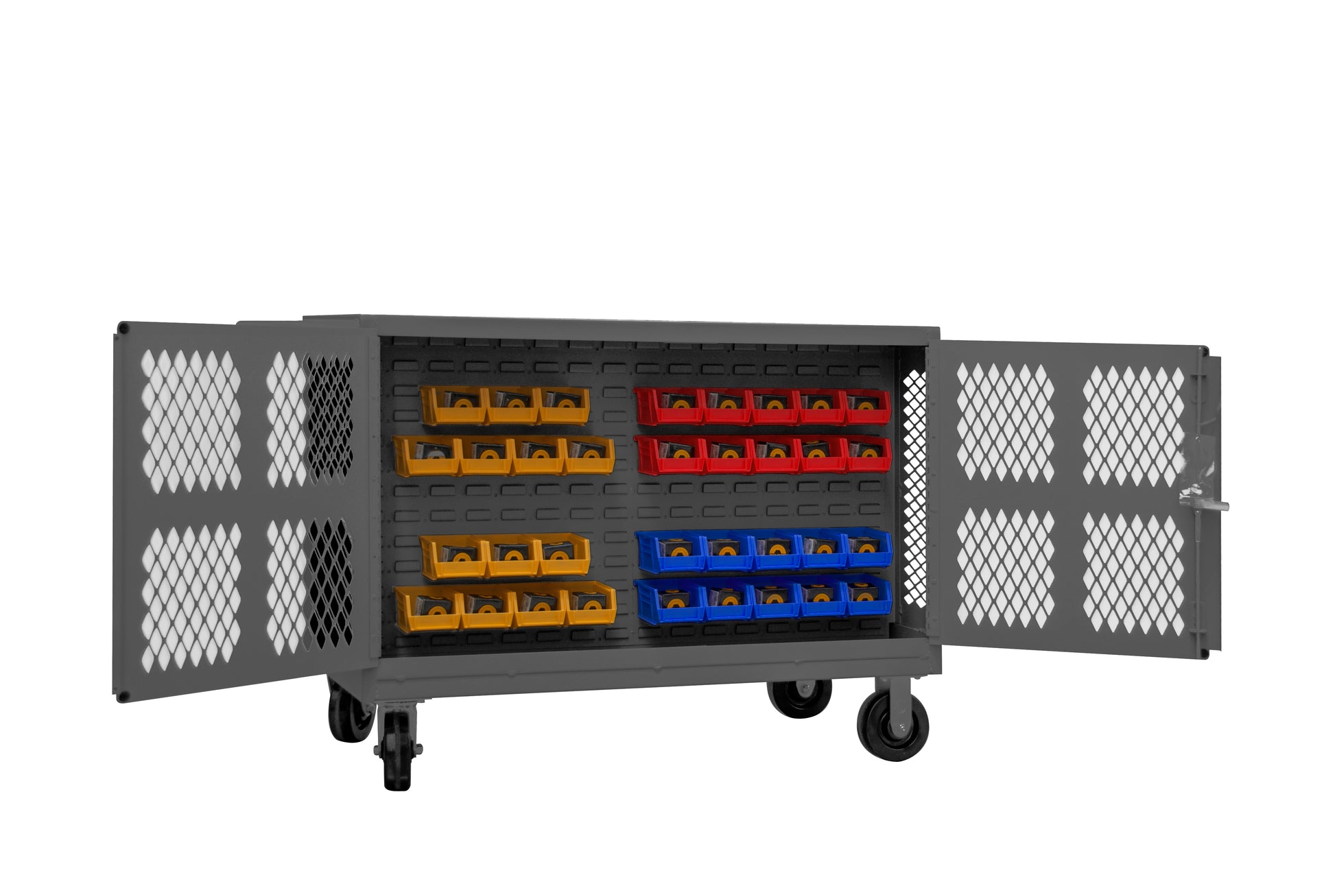 Double Sided Maintenance Cart with Louvered Panels, Diamond Punched Doors, Locking Handles, Tubular Push Handle, Gray