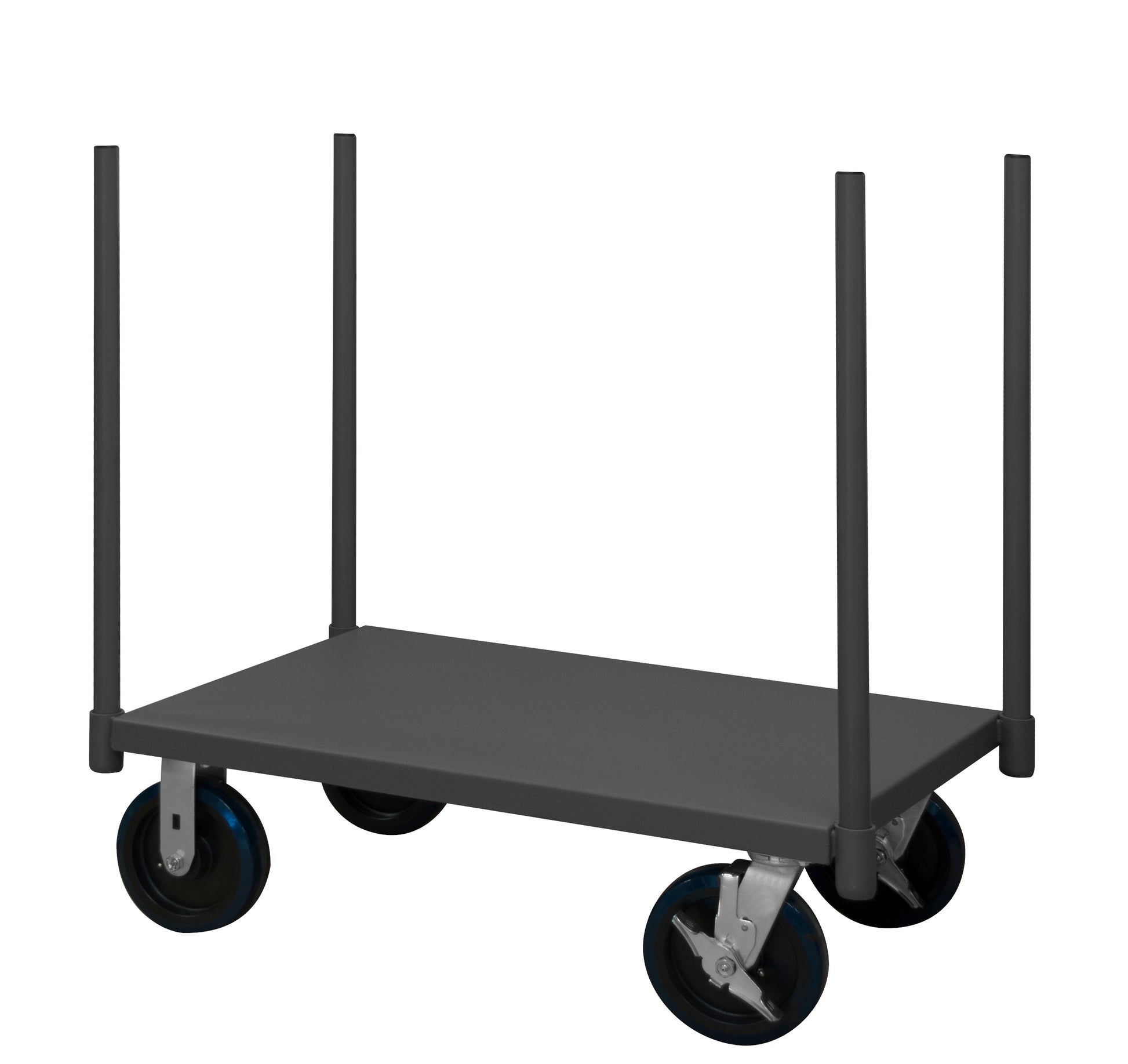 Pipe Stake Truck, 14 Gauge, 3600 lbs. Capacity, (4) Removable Pipe Stakes, 24 x 48 - Flush Deck, 8" x 2" Polyurethane - Non-Marking Casters - (2) Rigid, (2) Swivel with Side Brakes, Gray