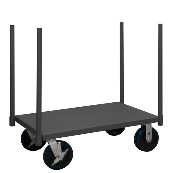 Pipe Stake Truck, 14 Gauge, 3600 lbs Capacity, (4) Removable Pipe Stakes, 30 x 48 - Flush Deck, 8" x 2" Polyurethane - Non-Marking Casters - (2) Rigid, (2) Swivel with Side Brakes, Gray