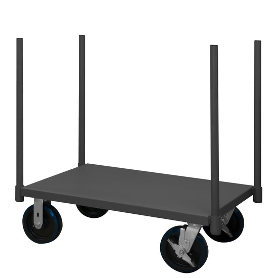 Pipe Stake Truck, 14 Gauge, 3600 lbs. Capacity, (4) Removable Pipe Stakes, 30 x 60 - Flush Deck, 8" x 2" Polyurethane - Non-Marking Casters - (2) Rigid, (2) Swivel with Side Brakes, Gray