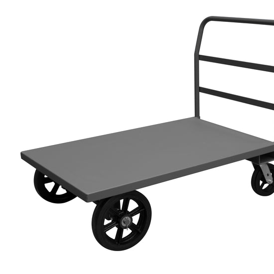 Platform Truck, 12 Gauge, 3000 lbs Capacity, 30 x 72, Flush Deck, (2) 8 x 2 (2) 12 x 2-1/2 Mold-On Rubber Casters - (2) Rigid, (2) Swivel, Gray