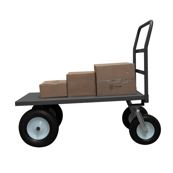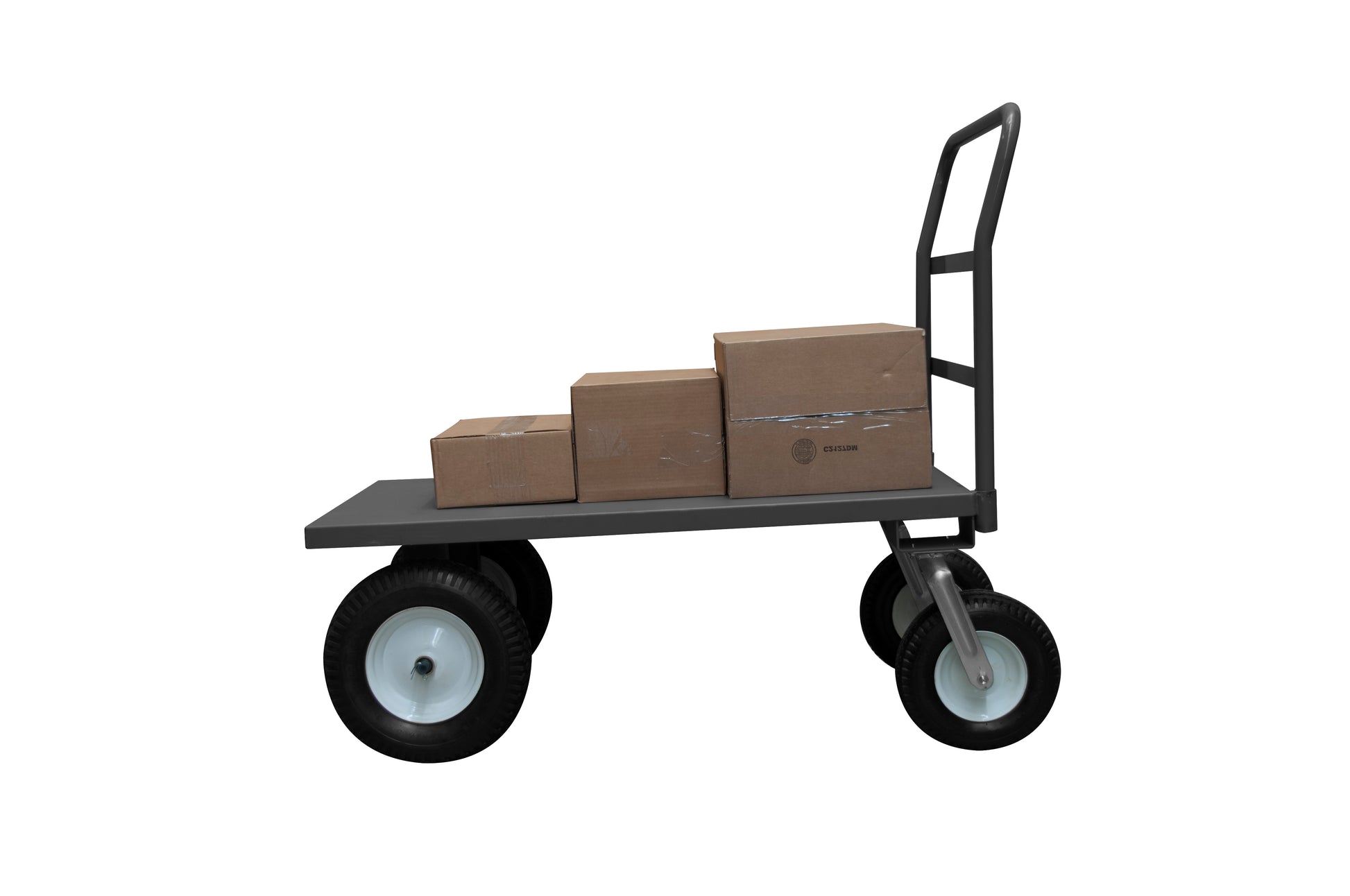 Platform Truck, 12 Gauge, 2500 lbs Capacity, 36 x 60, Flush Deck, (2) 12 x 3-1/2 (2) 15-1/5 x 3-3/4 Pneumatic Casters - (2) Rigid, (2) Swivel, Gray