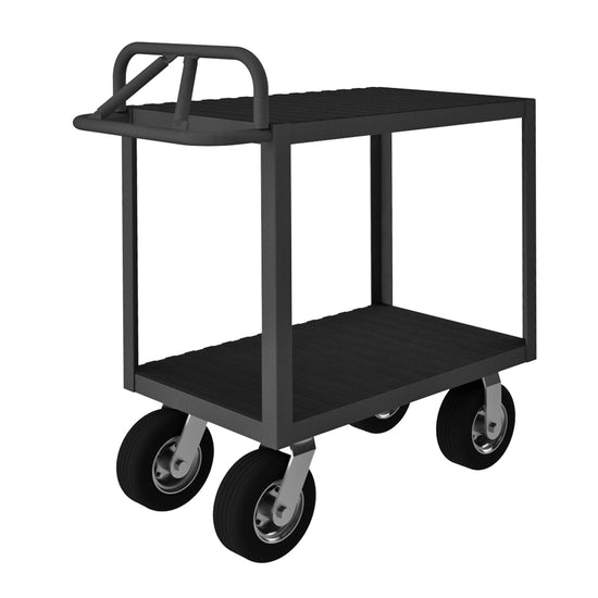 Instrument Cart, Ergonomic Handle, 14 Gauge Steel, 2 Shelves, 30 x 36, 1200 lbs. Capacity, Non-Slip Vinyl Matting, 8" x 2-1/4" Semi-Pneumatic Casters - (2) Rigid, (2) Swivel, Gray