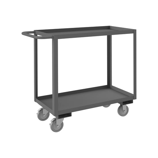 Stock Cart, 2 Shelves, 18 x 36, 14 Gauge, 1200 lbs. Capacity, 5" x 1-1/4" Polyurethane Casters - (2) Rigid, (2) Swivel with Side Brakes, Gray