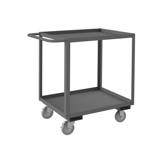 Stock Cart, 2 Shelves, 24 x 30, 14 Gauge, 1200 lbs. Capacity, 5" x 1-1/4" Polyurethane Casters - (2) Rigid, (2) Swivel with Side Brakes, Gray