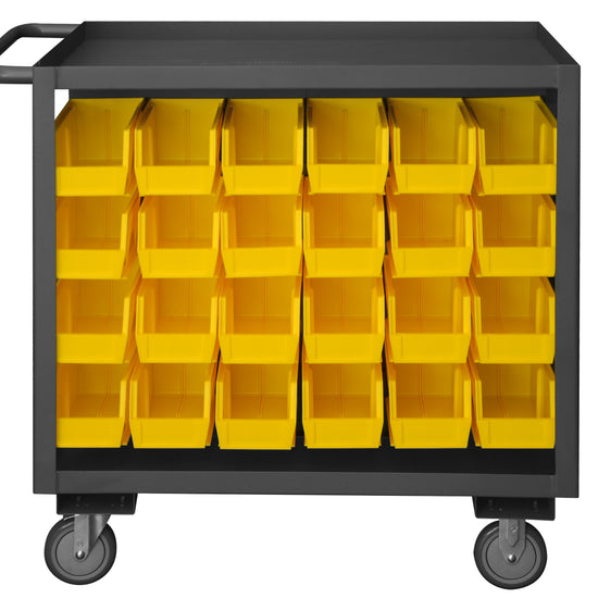 Stock Cart, 2 Shelves, 24 x 36, 14 Gauge, 1200 lbs. Capacity, 48 Yellow Bins, 5" x 1-1/4" Polyurethane Casters - (2) Rigid, (2) Swivel with Side Brakes, Gray