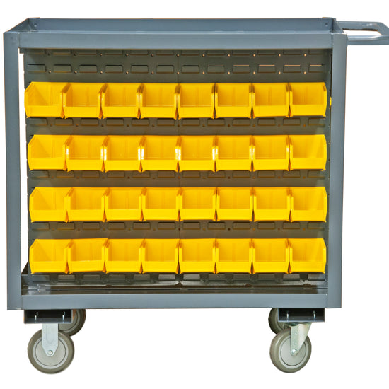 Stock Cart, 2 Shelves, 24 x 36, 14 Gauge, 1200 lbs. Capacity, 64 Yellow Bins , 5" x 1-1/4" Polyurethane Casters - (2) Rigid, (2) Swivel with Side Brakes, Gray