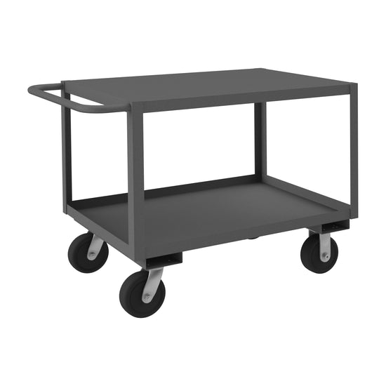 Stock Cart, 2 Shelves, 24 x 36, 14 Gauge, 1200 lbs. Capacity, 6" x 2" Polyolefin Casters - (2) Rigid, (2) Swivel, Gray