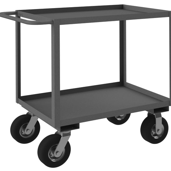 Stock Cart, 2 Shelves, 24 x 36, 14 Gauge, 1200 lbs. Capacity, 8" x 2-3/4" Pneumatic Casters - (2) Rigid, (2) Swivel, Gray