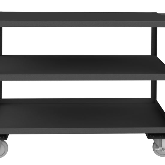 Stock Cart, 3 Shelves, 24 x 48, 14 Gauge, 1200 lbs. Capacity, 5" x 1-1/4" Polyurethane Casters - (2) Rigid, (2) Swivel with Side Brakes, Gray
