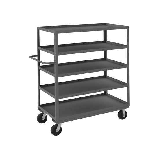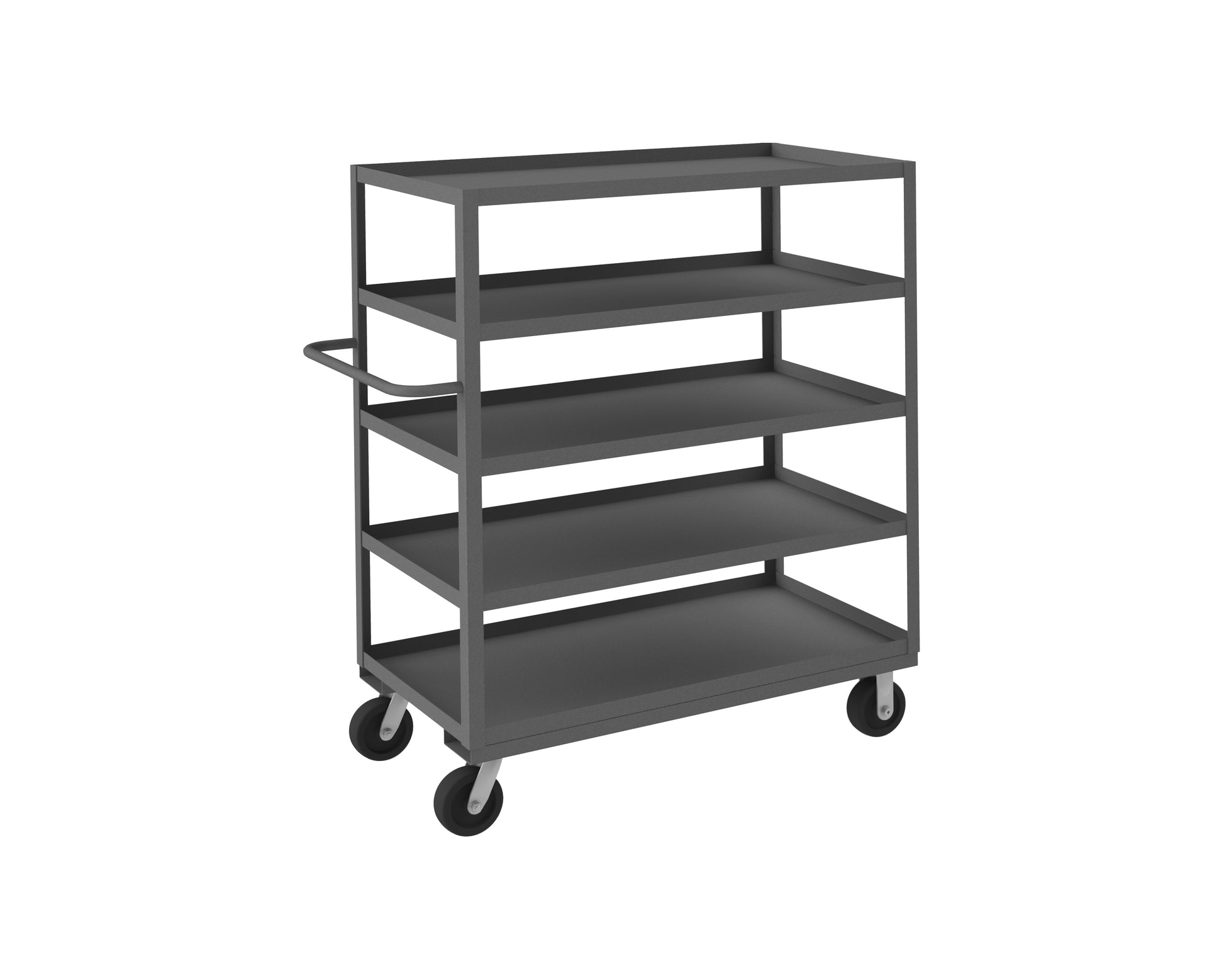 Stock Cart, 5 Shelves, 24 x 48, 14 Gauge, 3000 lbs. Capacity, 6" x 2" Phenolic Casters - (2) Rigid, (2) Swivel, Gray