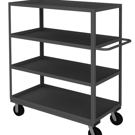 Stock Cart, 4 Shelves, 24 x 48, 14 Gauge, 3000 lbs. Capacity, 6" x 2" Phenolic Casters - (2) Rigid, (2) Swivel, Gray