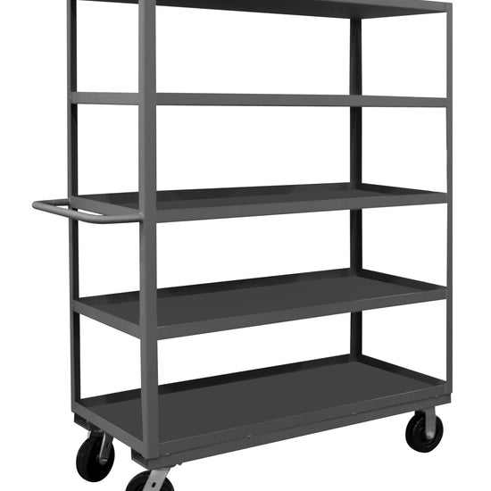 Stock Cart, 5 Shelves, 24 x 48, 14 Gauge, 3000 lbs. Capacity, 6" x 2" Phenolic Casters - (2) Rigid, (2) Swivel, Gray