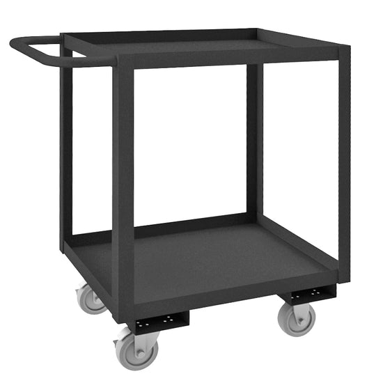 Stock Cart, 2 Shelves, 30 x 36, 14 Gauge, 1200 lbs. Capacity, 5" x 1-1/4" Polyurethane Casters - (2) Rigid, (2) Swivel with Side Brakes, Gray