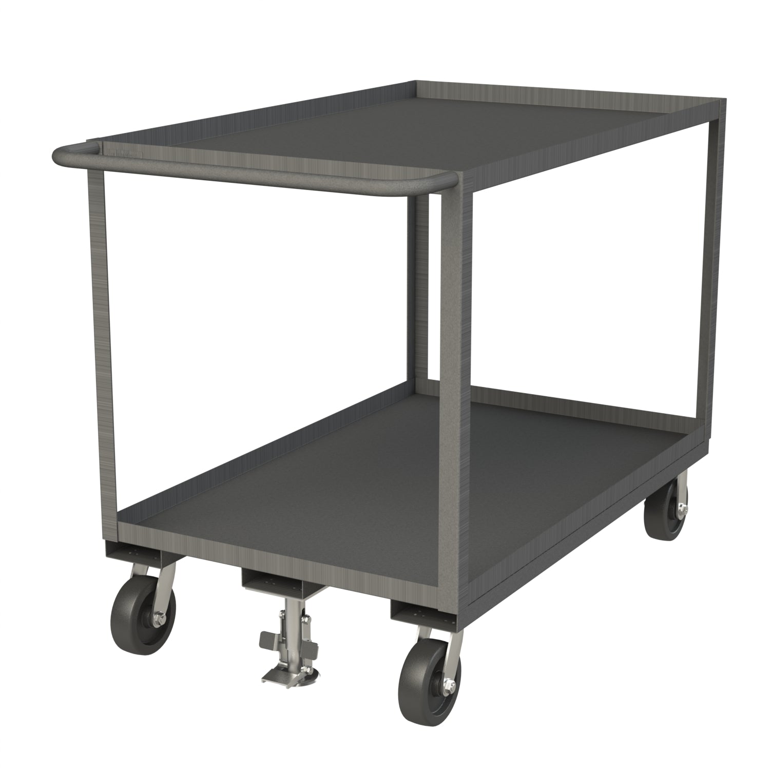 Stock Cart, 2 Shelves, 30 x 48, 14 Gauge, 2400 lbs. Capacity, Floor Lock, 6" x 2" Phenolic Casters - (2) Rigid, (2) Swivel, Gray