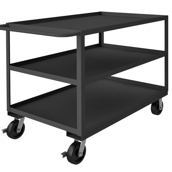 Stock Cart, 3 Shelves, 30 x 48, 14 Gauge, 3000 lbs. Capacity, 6" x 2" Phenolic Casters - (2) Rigid, (2) Swivel with Side Brakes, Gray