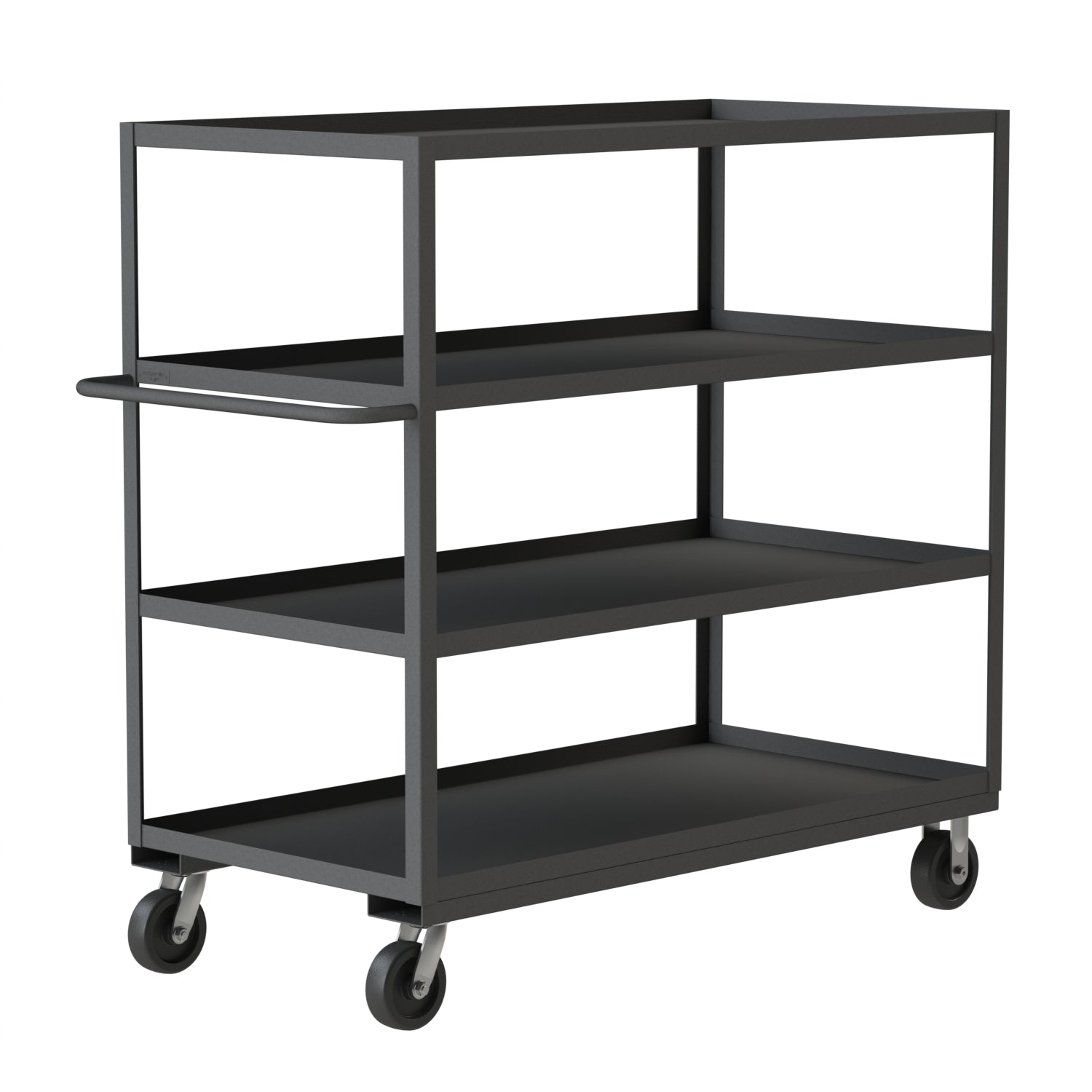 Stock Cart, 4 Shelves, 30 x 60, 14 Gauge, 3000 lbs. Capacity, 6" x 2" Phenolic Casters - (2) Rigid, (2) Swivel, Gray