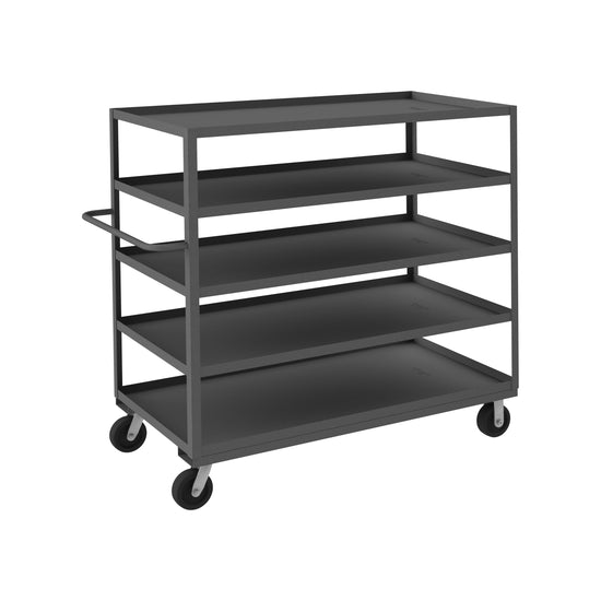 Stock Cart, 5 Shelves, 30 x 60, 14 Gauge, 3000 lbs. Capacity, 6" x 2" Phenolic Casters - (2) Rigid, (2) Swivel, Gray