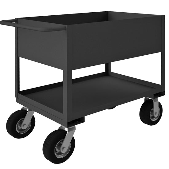 Stock Cart, 2 Shelves, 12" High Lips, 24 x 36, 14 Gauge, 1200 lbs. Capacity, 8" x 2-3/4" Pneumatic Casters - (2) Rigid, (2) Swivel, Gray