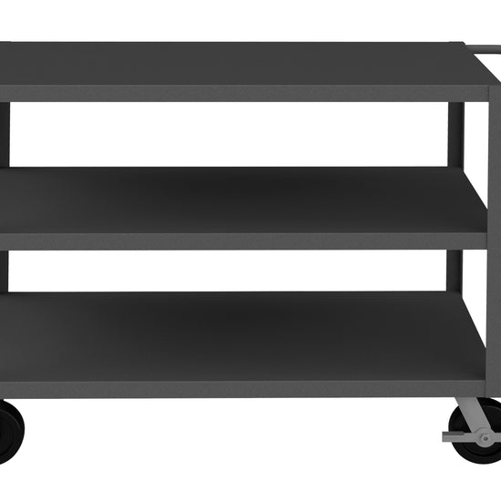 Stock Cart, 3 Shelves, 24 x 48, 14 Gauge, 3000 lbs. Capacity, 6" x 2" Phenolic Casters - (2) Rigid, (2) Swivel with Side Brakes, Gray