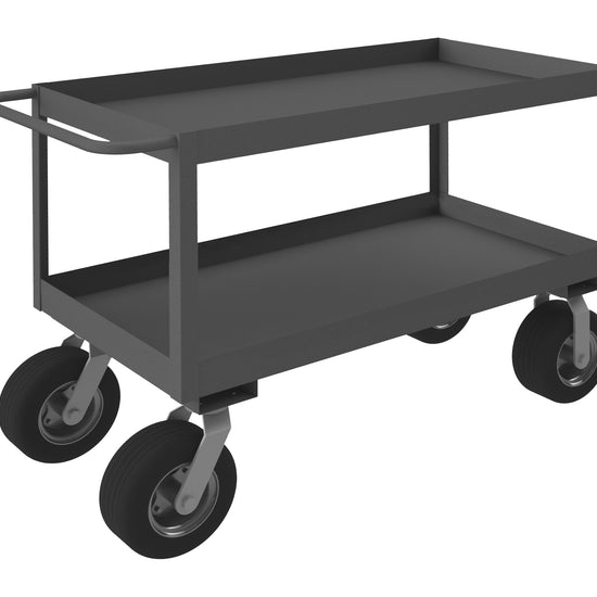 Stock Cart, 2 Shelves, 3" High Lips, 24 x 48, 14 Gauge, 1200 lbs. Capacity, 10" x 2-9/16" Semi-Pneumatic Casters - (2) Rigid, (2) Swivel, Gray