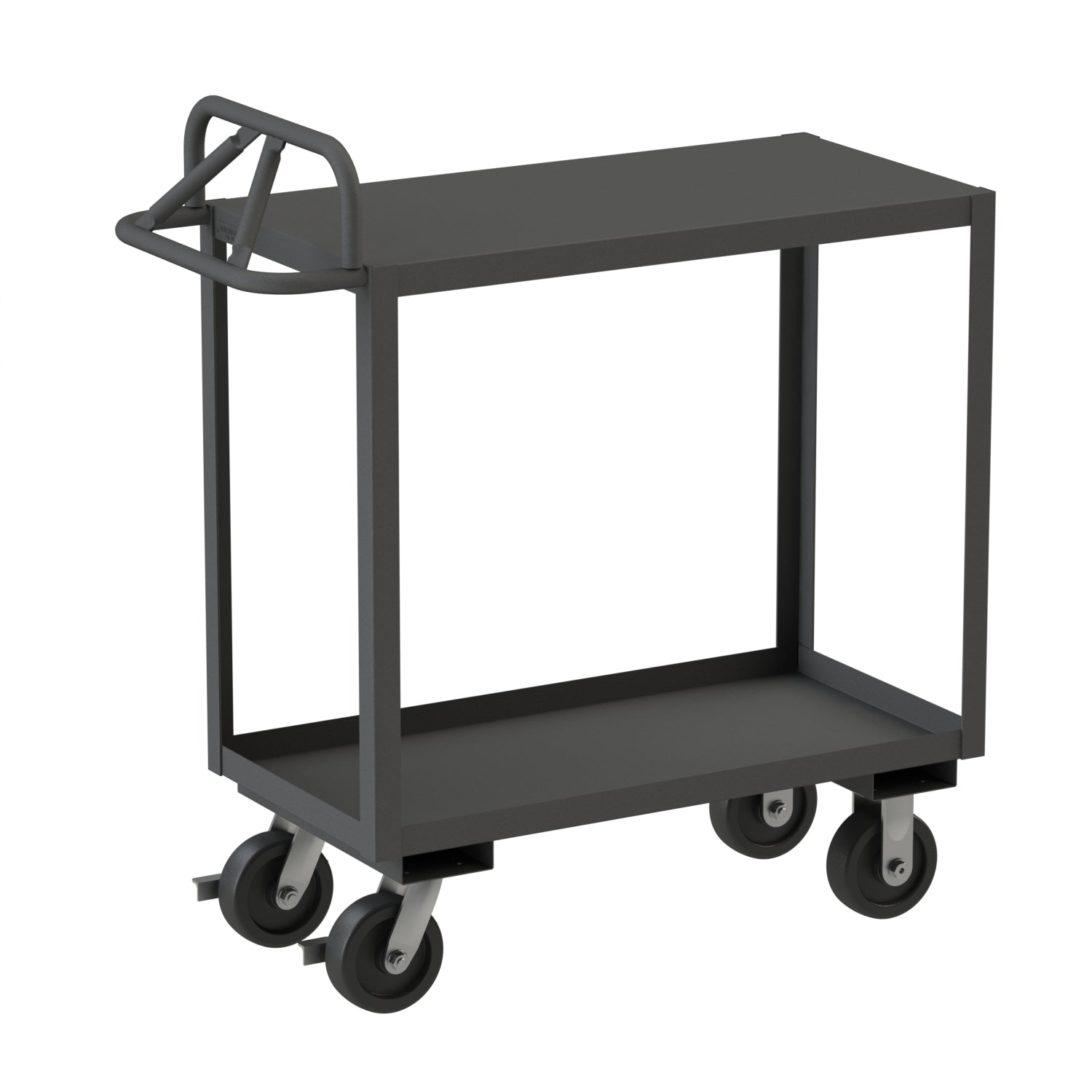 Stock Cart, 2 Shelves, 18 x 36, 14 Gauge, 3600 lbs. Capacity, Ergonomic Handle, 6" x 2" Phenolic Casters - (2) Rigid, (2) Swivel with Side Brakes, Gray